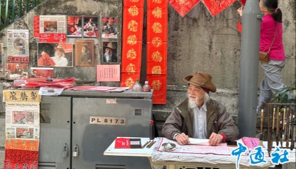 農曆新年臨近,在香港北角街頭,書法家陳鑫發師傅正忙於書寫春聯。(香港中通社圖片) 驅邪的桃符、迎新的吉語,千年流轉,今天在現代都市香港仍找得到存續的縫隙。無論是老師傅筆下的工整楷書,或新生代創意圖案,每一幅紅紙都是生活的祝願。當我們在方寸紅紙間尋找來年順遂,其實也在默默傳遞:願家人平安,願港人安樂,願這座城市仍擁有屬於自己的年味與溫度。(完) 【編輯:黃璇】