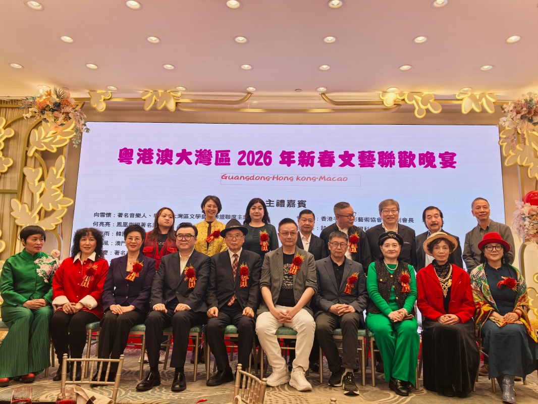 香港新聞網3月22日電 粵港澳大灣區新春文藝晚會20日舉行。活動由粵港澳大灣區文學藝術聯盟、香港女作家協會、香港文藝雜誌社、蒲公英集團、手機攝影協會等9個團體聯合主辦,近兩百位來自全國及粵港澳地區的詩人、作家、音樂家、書畫家、攝影家及影視藝人出席。 晚會現場,來自內地的“中國新時代十大女詩人”的胡茗茗、施施然、金鈴子、王妍丁等詩人,及深圳的胡野秋、黃元元、遠紅、登成英(珠海)等專程來港,與蔡麗雙、何佳霖、舒非、周蜜蜜等粵港澳著名詩人同台朗誦。