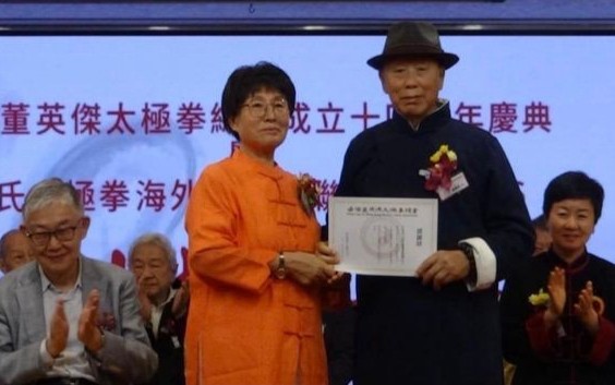 香港新聞網3月30日電 香港董英傑太極拳總會成立十四週年慶典暨董氏太極拳海外交流團晚宴日前在香港熱鬧舉行,香港董英傑太極拳總會創會會長董鄭小芬、來自美國的董氏第三代傳人董增辰、董白燕、董氏第四代傳人董大德、香港董英傑太極拳總會永遠會長嚴景初、黃巧兒、該會榮譽會長何永棠及主禮嘉賓施永青、香港美術家協會主席林天行、武術家蔡長慶等出席主禮。來自世界各地包括歐美、東南亞和兩岸三地的董氏太極拳傳人濟濟一堂,席間舉行武術表演,節目精彩紛呈。