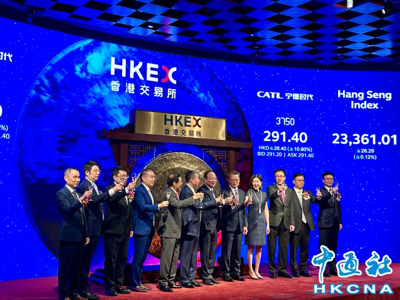 •   5月20日,寧德時代H股首日在香港交易所掛牌。香港新股市場迎來今年以來全球IPO王者、電動車電池龍頭寧德時代。(香港中通社記者徐嘉儀攝) 香港中通社圖片