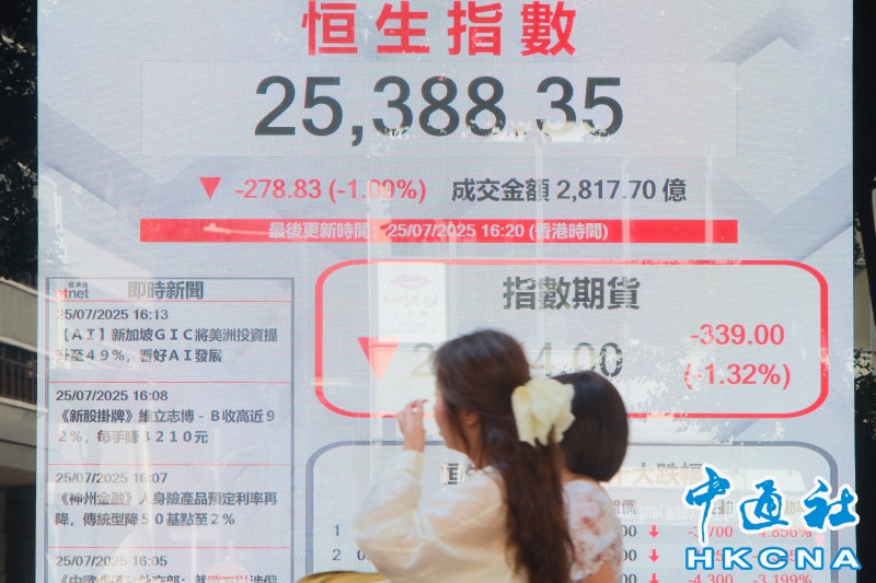 香港恒生指數跌278.83點 報25388.35點分享到: