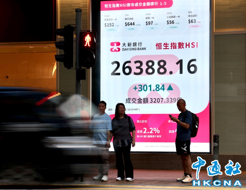 •   9月12日,香港恆生指數收報26388.16點,創逾4年新高,全日升301點,升幅約1.2%,主板成交額逾3207億元。(香港中通社記者 徐文峰攝) 香港中通社圖片