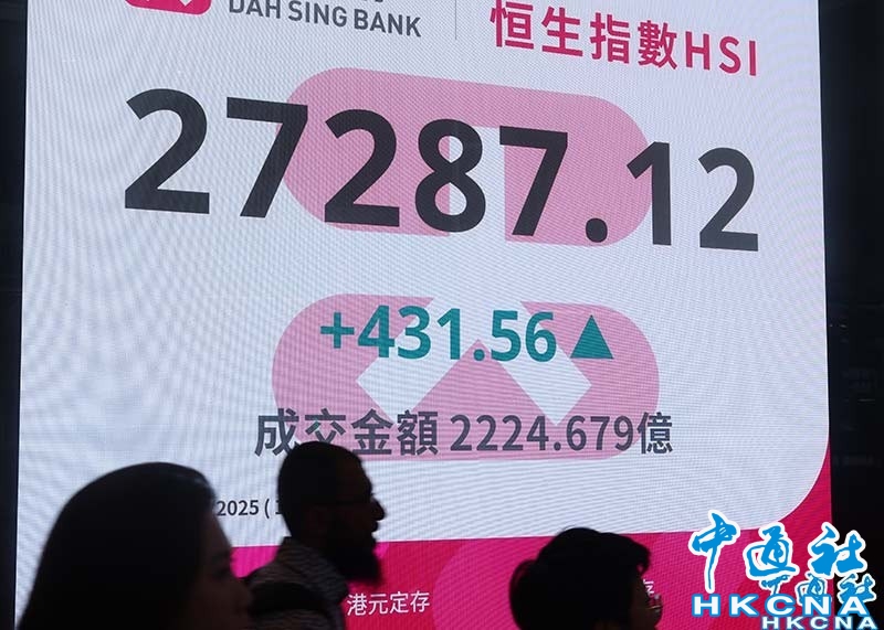 •   10月2日,香港恒生指數漲431.56點,漲幅1.61%,報27287.12點,主板全天成交2224.68億港元。(香港中通社鄧梓傑 攝) 香港中通社圖片