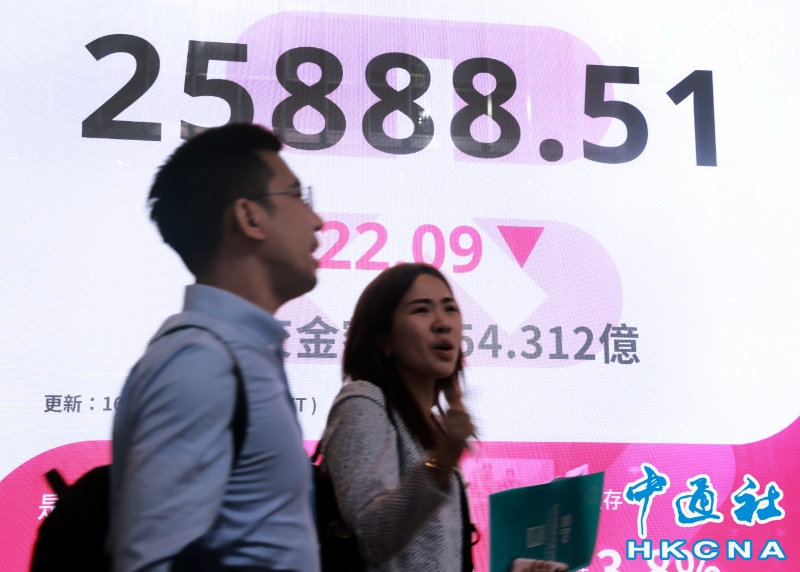 •   10月16日,截止收盤,香港恒生指數跌22.09點,跌幅0.09%,報25888.61點,主板全天成交2754.31億港元。(香港中通社 鄧梓傑攝) 香港中通社圖片