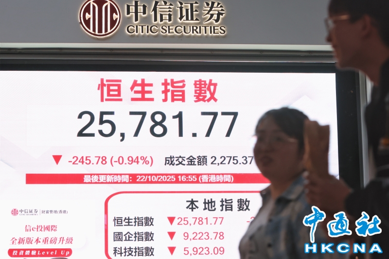 香港恒生指數跌245.78點 報25781.77點分享到: