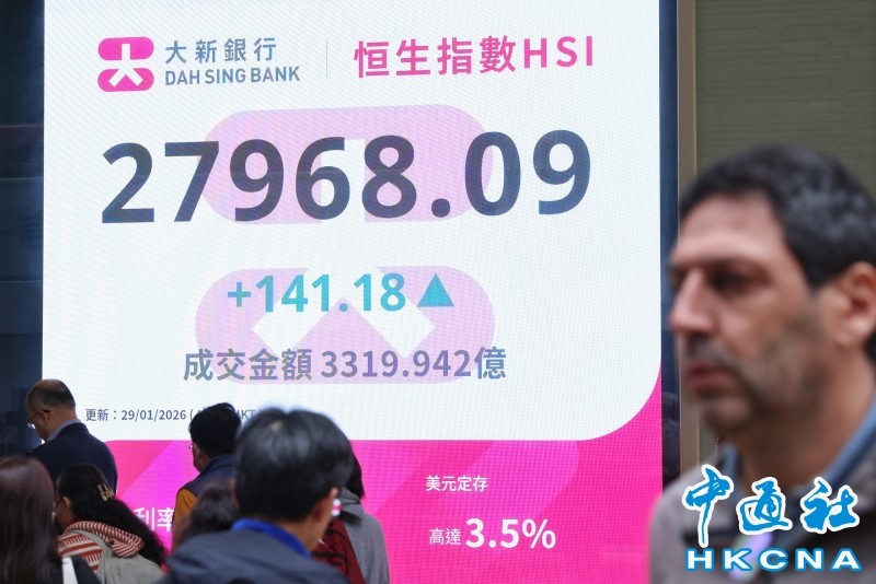 香港中通社圖片 當天,恆指先低開199點至27627點,其後曾稍跌至27611點漸見喘定,其後逐步回升,一度升229點;大市當日收報27968點。國企指數升40點或0.42%,收9552點;恆生科技指數跌59點或1%,收5841點。 信義玻璃升7.4%,是表現最好藍籌;金沙中國跌8%,是表現最差藍籌。香港首隻可於銀行兌換實物黃金的ETF當天上市,升9%;內房股顯著上漲,融創中國升29.1%;合景泰富升41%;龍湖升5.8%。 摩根大通發表報告表示,內房股股價走高,市場猜測可能源於中國不再要求開發商每月上報“三條紅線”的合規情況。但該行認為,僅憑此消息不足以解釋行情,因當局早在數年前已不再要求開發商定期上報。 香港股票分析師協會副主席郭思治對中通社記者分析,接近1月尾聲,只要買盤不失,大市有機會於2月上旬進一步推升,以目前大市正拉鋸於27900點附近計,假如2月大市能保持先低後高形態,恆指可憧憬上試28800點至29000點。從中期之角度看,今年大市有機會上破30000點大關。(完) 【編輯:林曉惠】