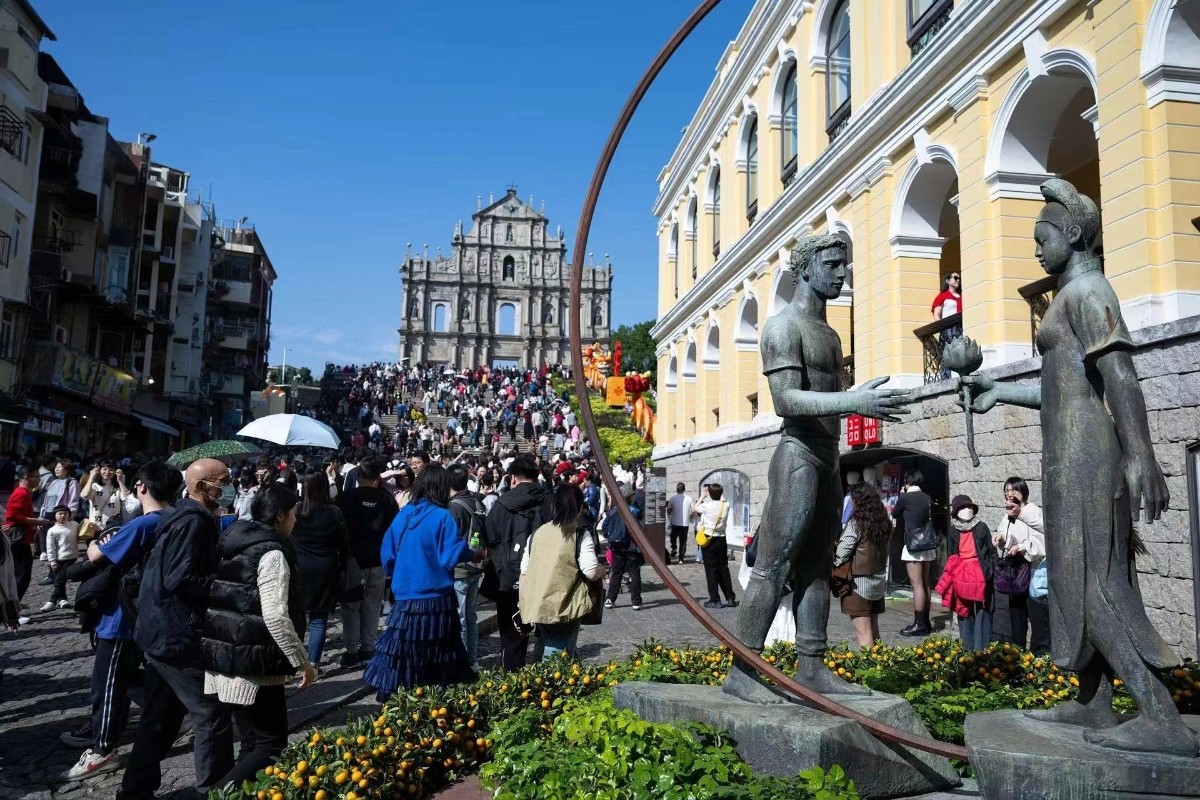 圖為澳門大三巴牌坊。香港中通社資料圖 大三巴街的人潮管制措施從下午2時30分起生效,並於下午4時45分取消。治安警呼籲公眾應遵從在場警員指示。有旅客認為人潮管制措施對疏導人流有一定效果,加上每個路口都有警員在場協助,認為相關安排不錯。 澳門市區的人流量也較平日明顯增加,其中中區一帶人流暢旺。有位於該區的珠寶店店員表示,本次小長假消費人數較平日多1倍,成交率近五成。(完) 【編輯:馬華】