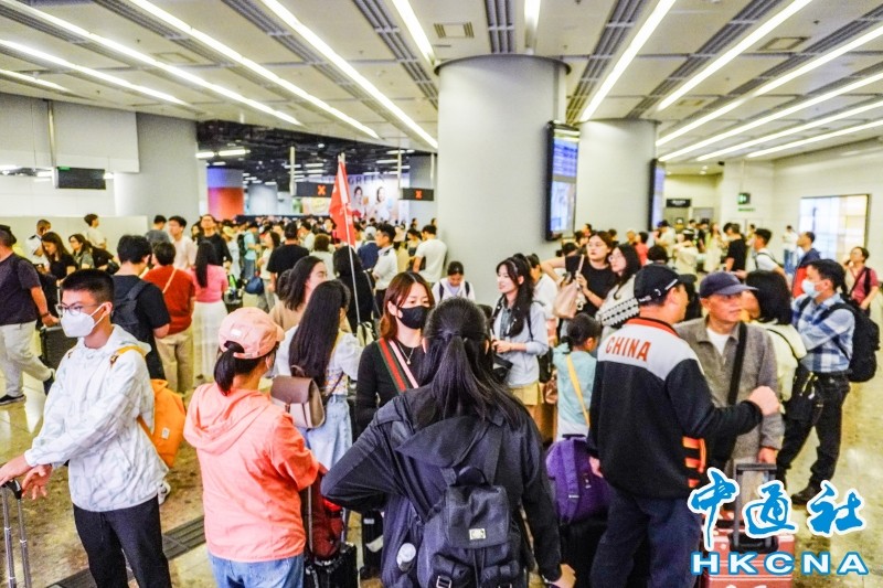中通社記者在西九龍站觀察到,不少旅客攜帶著大型行李抵港。其中,不少為參與旅行團的內地居民。與平日參團的客人有異,“五一”期間參團的年輕人明顯較平日多。此外,也有來香港共度天倫之樂的家庭旅客參團。