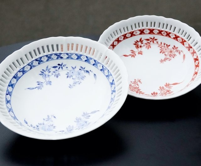 上世紀七十年代紅彩、藍彩“督花”7寸通邊碟。(資料圖片)