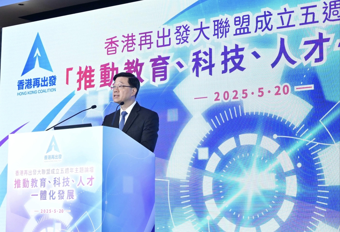 香港特區行政長官李家超今日(5月20日)在香港再出發大聯盟成立五週年主題論壇致辭。香港特區政府新聞處圖片 李家超回顧大聯盟成立以來,助力香港從由亂到治走向由治及興,肯定大聯盟團結社會力量推動香港擺脫困局,以香港利益為最大公因數的代表性組織,推動香港“再出發”。 李家超表示,面對保護主義、單邊主義抬頭,地緣政治衝突和安全風險日增,新一輪科技革命和產業變革加速突破,國際秩序面臨重塑。面對種種不確定性,香港更要在危機中找機遇,在變局中求突破。 他說,今屆政府全力強化治理體系,從高層統籌推進教育、科技、人才融合發展,擴大銜接連貫,推動育才、匯才、科技協同發展。他透露,現屆政府在2022年底優化香港輸入人才安排,截至上月底已批出超過31萬宗申請,當中近21萬人才已抵達香港。 “深港河套是大灣區重大合作平台之一,我們正積極推進深港科技創新合作區香港園區的發展。”李家超預告,香港園區首三座大樓已落成,將在未來數個月迎來首批支柱產業租戶進駐,正式進入營運階段。我們會推動香港與深圳園區聯動發展,支持人員、物資、資金、數據自由流動,形成高端科創人才聚集效應,打造人才集聚高地。(完) 【編輯:馬華】