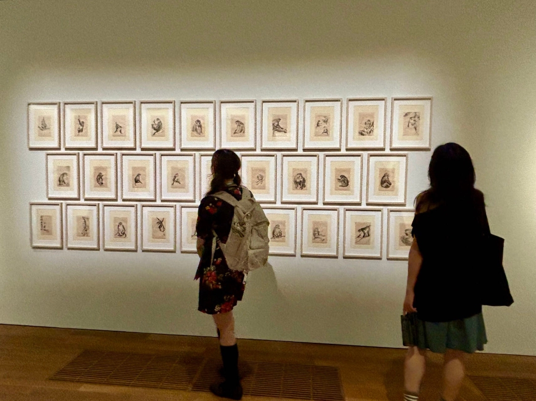 觀者在欣賞高奇峰作品《繪猿百態冊頁》(七十七頁中選二十九頁)。(香港中通社記者 黃璇攝) M+博物館館長華安雅表示,這次展覽向來自世界各地的觀眾展示廣東地區的豐富文化遺產,回溯廣東藝術與視覺文化的發展歷程及其與香港的密切連結。“展覽引領觀眾重返二十世紀的歷史現場,見證圖像時代的誕生。”M+水墨藝術副策展人楊浚承如是闡述其核心視角。 回溯二十世紀初,語言文化相連、同為重要港口的廣州與香港,成為中國重新思考藝術意義的先鋒之地。廣東藝術家們突破傳統文人趣味,著重社會關懷,紛紛運用印刷、攝影與漫畫等媒介去介入社會、建構現實。