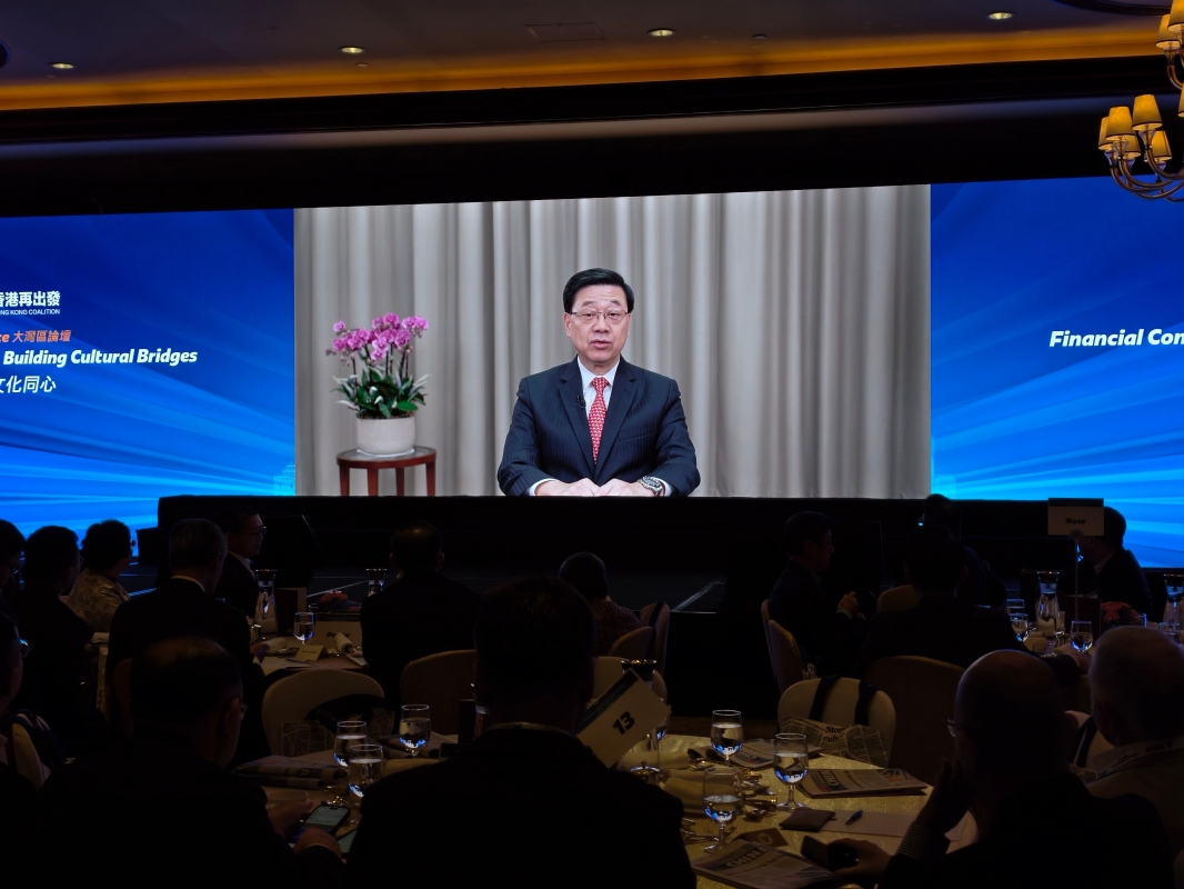 香港特區行政長官李家超。香港新聞網記者 梁嘉軒攝 香港特區行政長官李家超以視頻方式致辭時表示,香港是唯一兼具“中國優勢”與“全球優勢”的國際都會,將憑藉“一國兩制”下的獨特優勢,推動高質量的全球合作。 此次論壇設立兩場研討會,一場對話會。特區政府代表及業界專家學者將對粵港澳大灣區如何在現有政策支持下進一步提升互聯互通水平,優化對接三地機制,將粵港澳大灣區打造成為中國高質量發展典範的話題進行分享,暢談行業觀察。 創新金融賦能:香港引領跨境互通新格局 香港憑藉國際金融中心優勢,最新《施政報告》積極推動“出海專班”政策落地,深化創新金融與跨境資本市場合作。通過制度創新、產品多元與專業服務,強化資金融通與政策互通,為內地企業拓展海外市場提供新動能,促進國家高質量發展與金融開放新格局的構建。