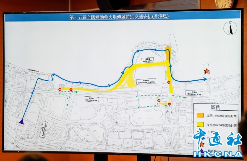 火炬傳遞期間,港島臨時管控的區域。(香港中通社 鄧梓傑 攝) 香港中通社圖片