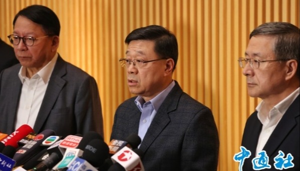 11月27日下午,香港特區行政長官李家超聯同相關官員在政府總部就大埔宏福苑五級火警跟進工作會見傳媒。香港中通社圖片 李家超感謝中央港澳辦工作小組抵港協助開展救援工作,充分體現中央對香港的關愛,以及國家“一方有難,八方支援”的精神。 政務司司長陳國基表示,非常感謝廣東消防救援總隊及深圳市消防支隊,他們借出8架配備熱成像功能的勘測無人機,以及2架可提供長期供電的無人機,這些裝備有效協助香港消防處加強火災現場的勘察與緊急調派工作。(完) 【編輯:李濼】
