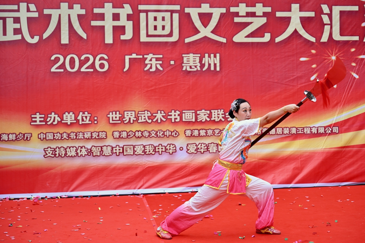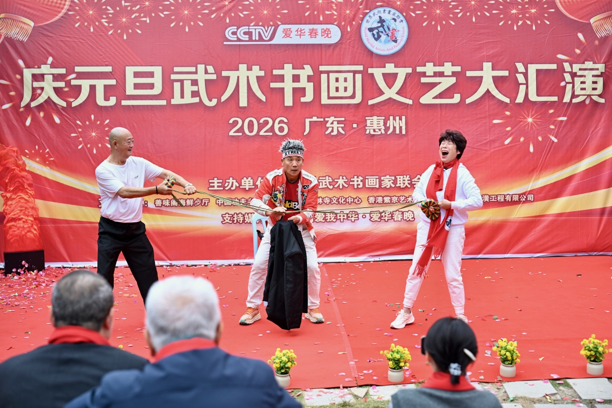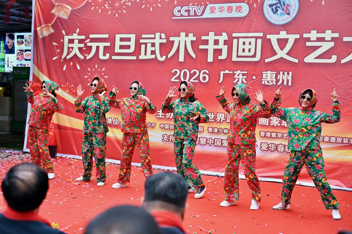 香港新聞網1月1日電(陳文圖文)元月1日,新年伊始,慶元旦武術書畫文藝大匯演在惠州武術訓練基地舉行,大灣區武術界與書畫界代表齊聚惠東同台獻藝。期間,世界武術書畫家聯會亞太非遺南少林五祖拳傑出代表、第五代傳承人高國雄師傅收徒儀式同時舉行。見證嘉賓有:馮礎堅、謝學良、施能雄、葉英飆、李嬋玲、馮麗萍、蘇少藝、黃漢平、高國良、方潮陽。活動贊助單位;智慧中國愛我中華(愛華春晚)、中國功夫書法研究院、香港少林寺文化中心、香港紫京藝術團、深圳豪德居工程有限公司、善味閣餐飲集團。