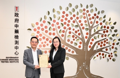 工作人員在製作中藥材標本 政府中藥檢測中心持續推展香港中藥材標準(港標)計劃,目前已公佈超過340種中藥材參考標準,並完成多項專項研究計劃,涵蓋中成藥檢測、中藥鑑別及三維圖像建庫等範疇。隨著新大樓全面啓用,相關檢測及科研能力將進一步提升。