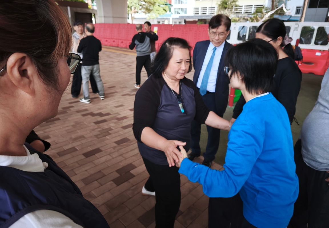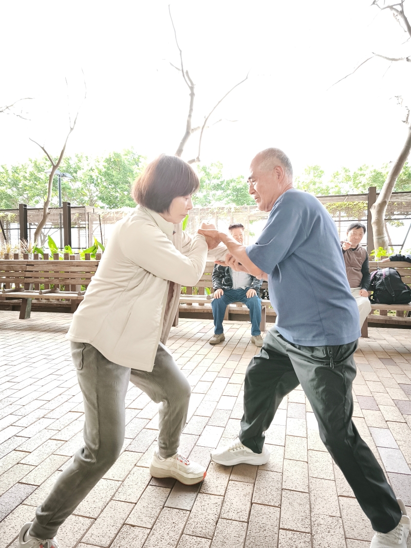 陳亞玲(左)和太極師傅們推手。