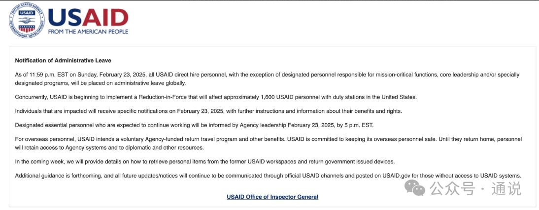 就在剛剛過去的周末,美國政府向國際開發署發出內部電郵,宣布將在美國本土裁員至少1600人,同時要求當天23時59分起除了核心領導層、關鍵崗位或負責特定項目的員工之外,全球所有員工實時休假。