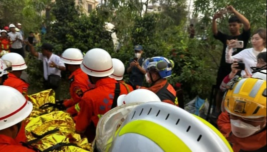 香港救援隊再一次出發。從災情發生到集結成隊到機場,前後不過一天時間。 3月28日14時20分,緬甸發生7.9級強烈地震。根據緬甸國家管理委員會29日下午公佈的數據,死亡人數增至1002人,另有2376人受傷、30人失蹤。 29日下午14時30分左右,香港特區政府派出保安局、消防處、入境處和醫管局共51人組成的救援隊前往緬甸,協助地震災區的搜救工作,隨行包括兩名醫生及兩名護士。救援隊還帶上了搜救犬以及9噸物資,包括爆破工具、生命探測器、無人機等,由消防處副消防總長趙汝玨擔任隊長。