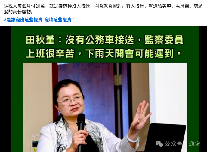 田秋堇會說出此番言論,大概率是忘記了監委被停用“公務車”的原因。