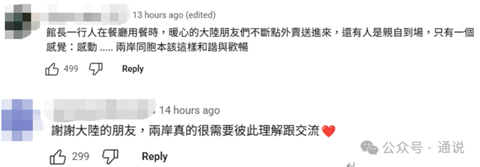 10日晚間6時許,“館長”落地上海後便迅速開啟“打假”行動,帶著網友“雲”體驗了時速飈上300公里的磁浮列車、感受了科技感爆棚的機器人酒吧,感受了大陸民眾的熱情與友善。針對大陸“厠所沒有門”“高鐵沒有靠背”“民眾吃不起茶葉蛋”等荒謬傳言,“館長”以直觀的現場畫面逐一闢謠。 晚上9時許,“館長”一行人在餐廳用餐。吃飯期間,不少大陸民眾自發點外賣“投喂”,還有一位大陸自媒體博主現身,幽默送出“大陸美食三件套”:泡面、榨菜、茶葉蛋。隨後,另一位台灣網紅“歷史哥”與“館長”進行視頻通話,“館長”有感而發,“民進黨都在亂講”。 通過互聯網與“館長”一起同游大陸的台灣網友,在視頻評論區留下了上千條評論,大家都在感慨,“兩岸同胞本該這樣和諧與歡暢”“謝謝大陸的朋友,兩岸真的很需要彼此理解與交流”“大陸朋友好熱情”,還有台灣網友直言,“大陸的交通真的很好”“原來大陸真的這麼進步”“好了,這下我真的醒了”。