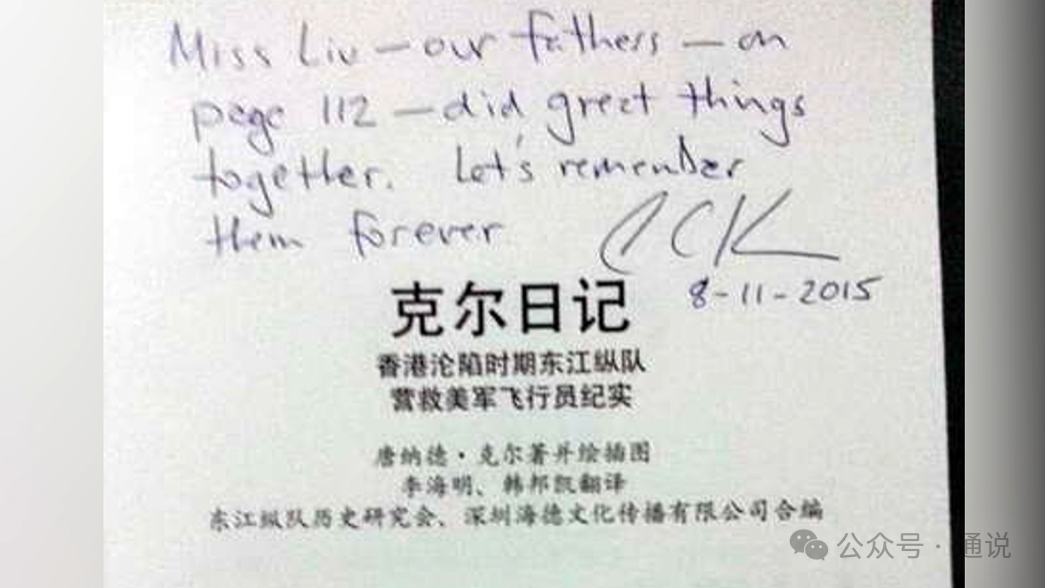 2015年11月,一架“飛虎隊”主力戰機P40的1:1模型機在香港展出。得知消息的廖韵琴欣喜不已,因為她的父親廖譚清當年正是作為中美混合團三大隊三十二中隊的飛行員,駕駛著P40戰機抗擊日寇,先後擊落敵機三架,還榮獲多枚戰功勛章。廖韵琴特意前往參觀,卻在模型機旁看到了一位外國友人,他正是同樣來追憶父親的大衛·克爾。
