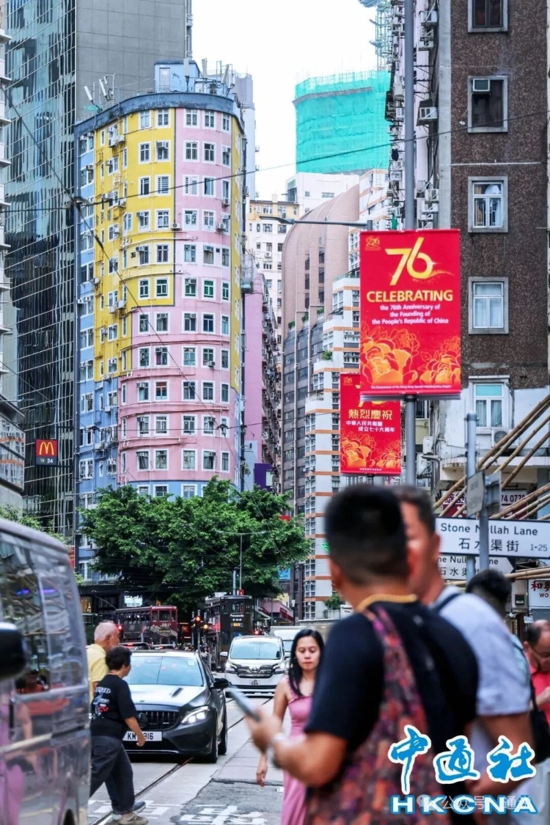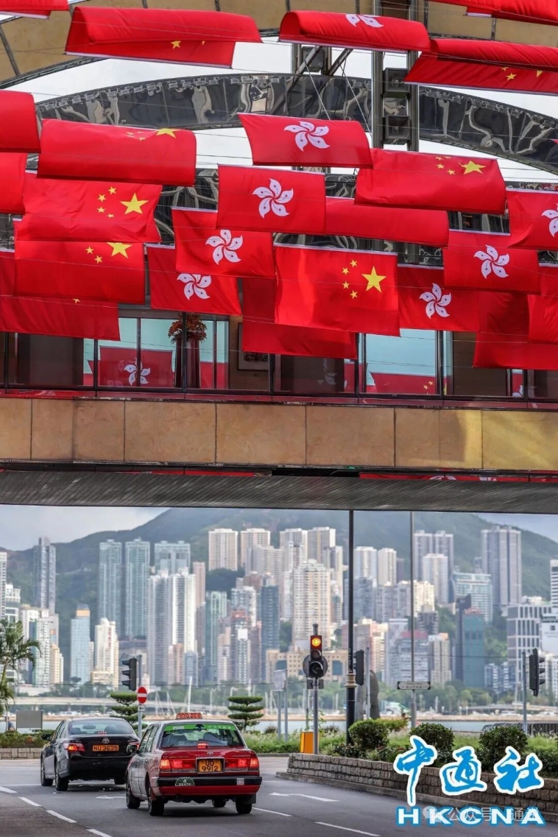 通說:國慶黃金周 香港歡迎你!國慶黃金周開啟,香港滿城裝點中國紅。10月1日早上,特區政府在金紫荊廣場舉行升旗儀式,街頭巷尾懸掛國旗、區旗,節日氛圍拉滿。