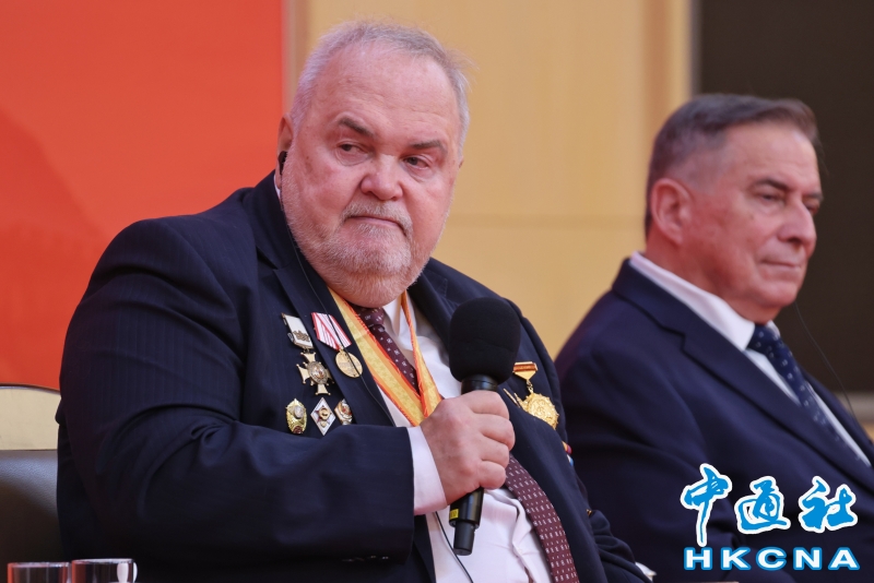 •   9月2日上午10時,中國人民抗日戰爭暨世界反法西斯戰爭勝利80周年紀念活動新聞中心舉辦第三場記者見面會,請為中國抗戰勝利作出貢獻的國際友人或其遺屬代表介紹對中國人民抗日戰爭的認識等方面情況,并回答記者提問。圖為蘇聯元帥瓦・伊・崔可夫之孫尼・弗・崔可夫出席記者見面會。(香港中通社記者  謝光磊 攝) 香港中通社圖片