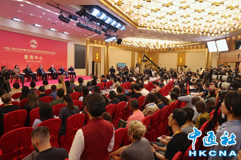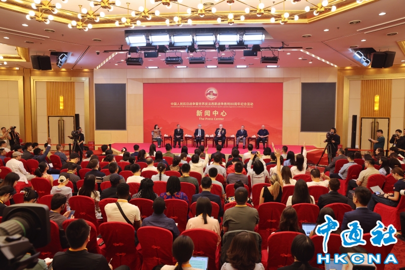 •   9月2日上午10時,中國人民抗日戰爭暨世界反法西斯戰爭勝利80周年紀念活動新聞中心舉辦第三場記者見面會,請為中國抗戰勝利作出貢獻的國際友人或其遺屬代表介紹對中國人民抗日戰爭的認識等方面情況,并回答記者提問。(香港中通社記者  謝光磊 攝) 香港中通社圖片