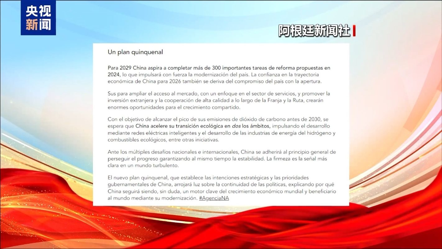 智利合作廣播電台:中國政策為全球經濟注入穩定 智利合作廣播電台網站的報道指出,“十五五”規劃體現了中國以科技創新驅動高質量發展、兼顧經濟穩定性與可持續性的戰略方向。作為世界第二大經濟體,中國的政策信號將為複雜的全球經濟格局提供重要穩定性。中國政府工作報告反映了一種以高質量發展為導向的策略,其核心是創新、環境可持續性和增進民生福祉。