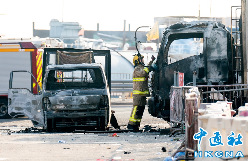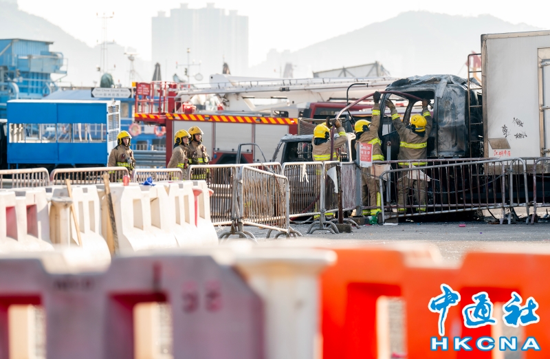 •   2月6日下午,香港長沙灣魚類批發市場及長沙灣副食品批發市場對開的欽明路8車起火,消防到場動用兩條喉及兩隊煙帽隊灌救。現場有兩男受傷,其中一名男子昏迷,被送往瑪嘉烈醫院搶救,另一名男子則清醒送往伊利沙伯醫院。(香港中通記者 陳奕啟 攝) 香港中通社圖片