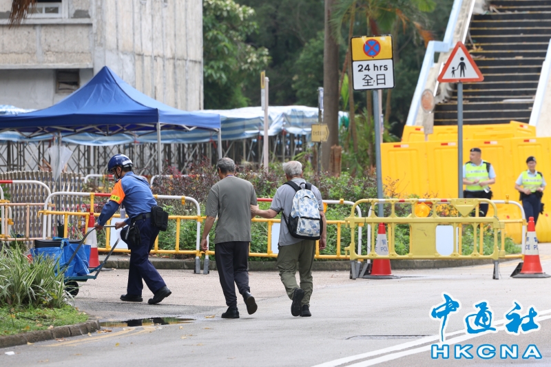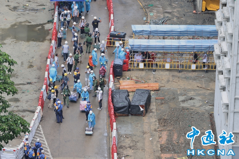 •   4月29日,香港政府有關部門安排大埔宏福苑受災居民第三輪分批返回單位執拾。圖為居民跟隨政府人員指引分批上樓執拾。(香港中通社記者 鄧梓傑 攝) 香港中通社圖片