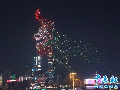 香港灣仔上空三大非遺節慶主題無人機表演吸引遊人