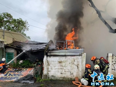 台灣基隆公寓頂樓鐵皮屋全面燃燒