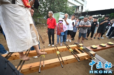 台灣新北市沙崙保安廟舉行過火、過刀橋活動
