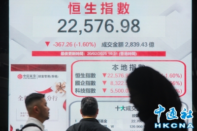 香港恒生指數跌367.26點 報22576.98點