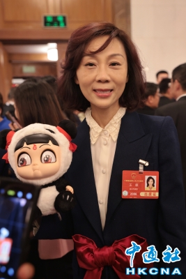 (中國兩會)全國人大代表王麒帶著“哪吒”熊貓玩偶上兩會
