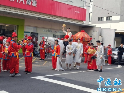 彰化縣花壇鄉街頭出現古式迎親隊伍