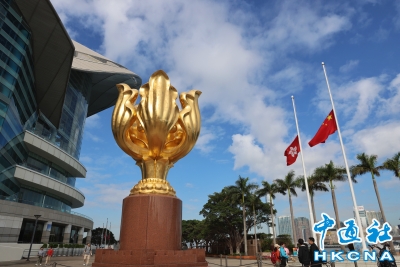 香港金紫荊廣場降半旗誌哀