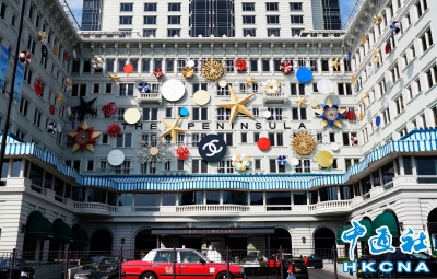 香港半島酒店外牆聖誕吊飾