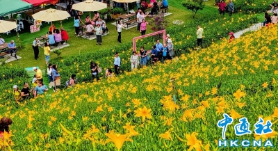 台灣彰化虎山巖綻放黃澄澄的“金針花海”