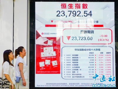 香港恒生指數跌114點 報23792點