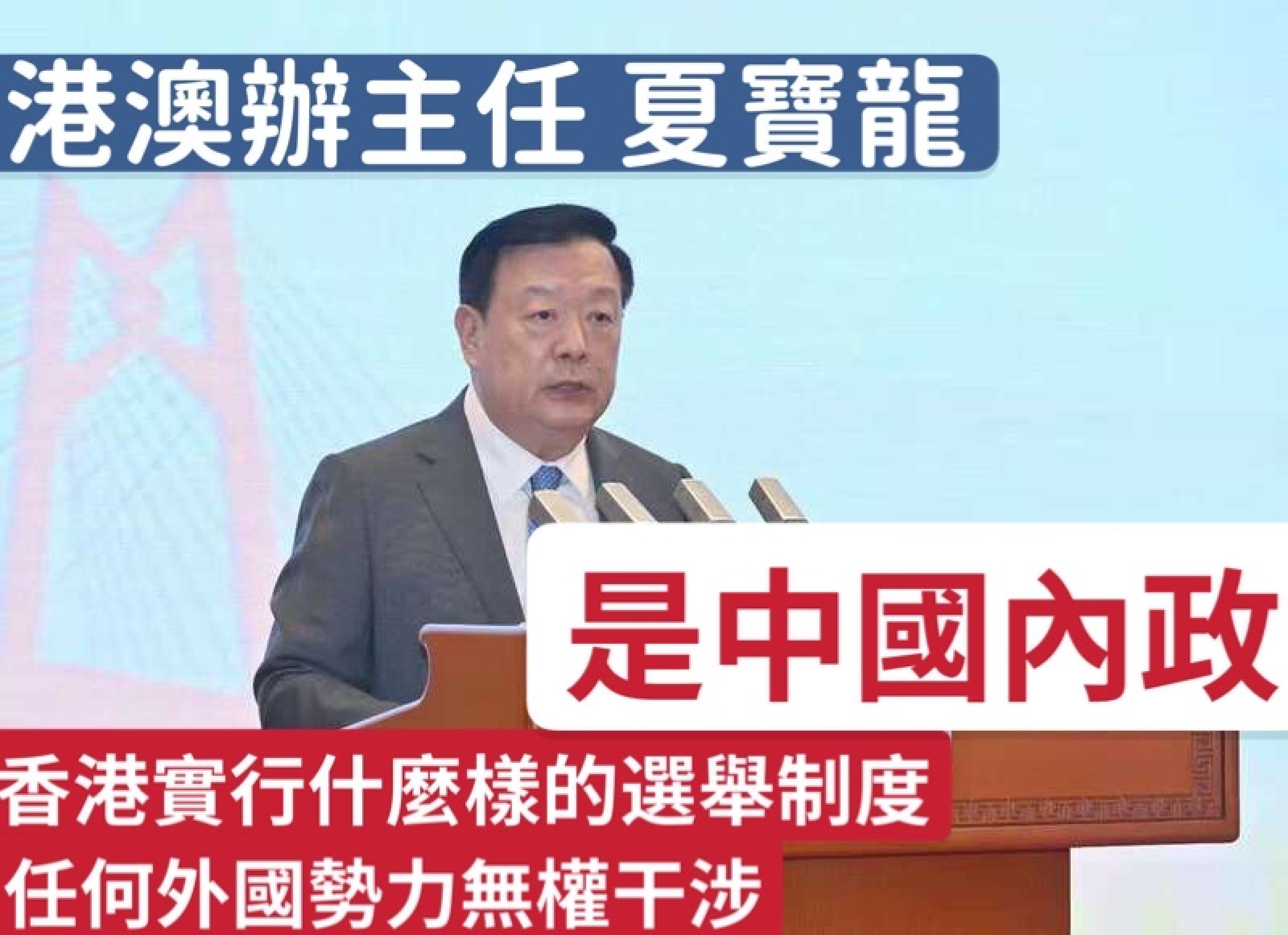 港澳辦主任夏寶龍:這次立法會選舉不是“單聲道”
