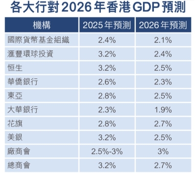 香港經濟2026年料穩步增長 GDP增幅或達3%