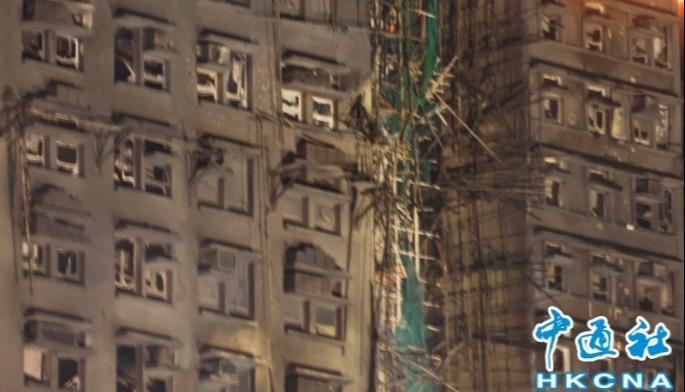 香港大埔大火28日清晨現場 仍有單位復燃滅火大致完成