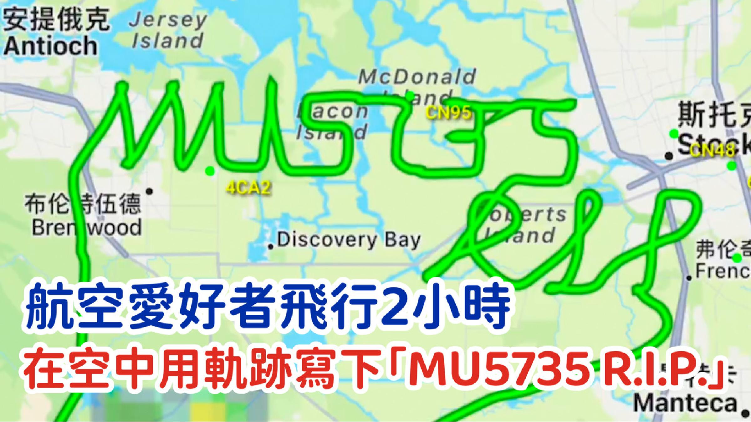 美國航空愛好者飛行2小時 在空中用軌跡寫下「MU5735R.I.P.」