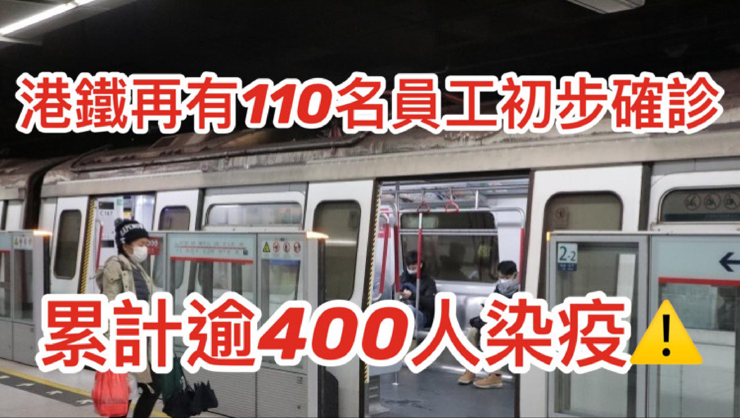 港鐵再有110名員工初步確診 累計逾400人染疫