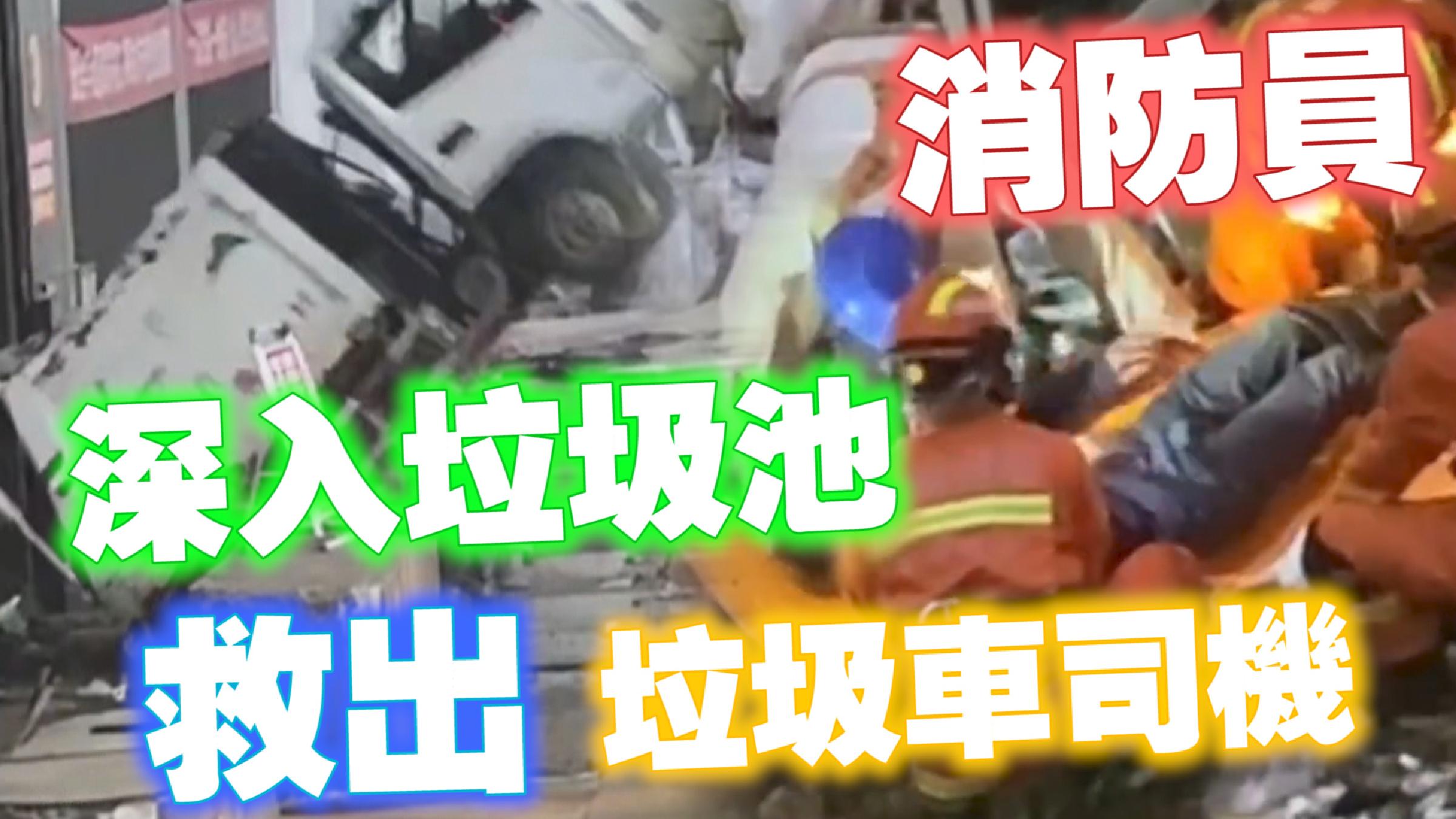 垃圾車連人帶車墜入23米垃圾庫 消防員徒手扒開垃圾救人