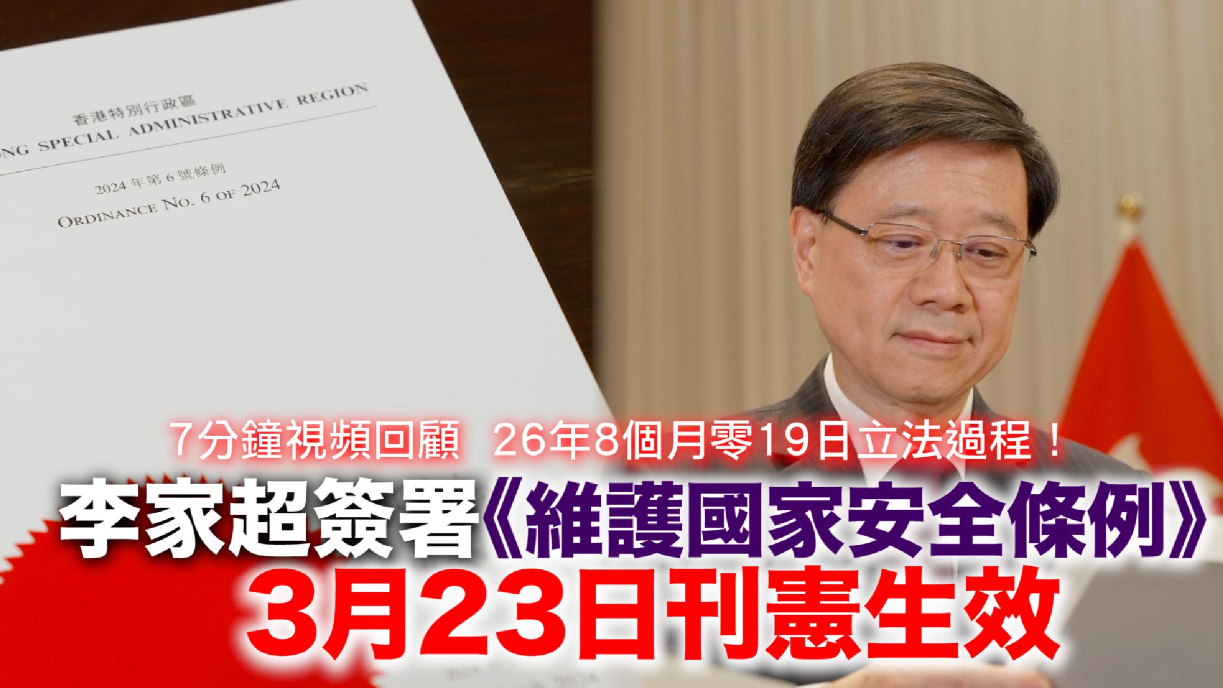 李家超簽署《維護國家安全條例》用7分鐘影片回顧過往歷程