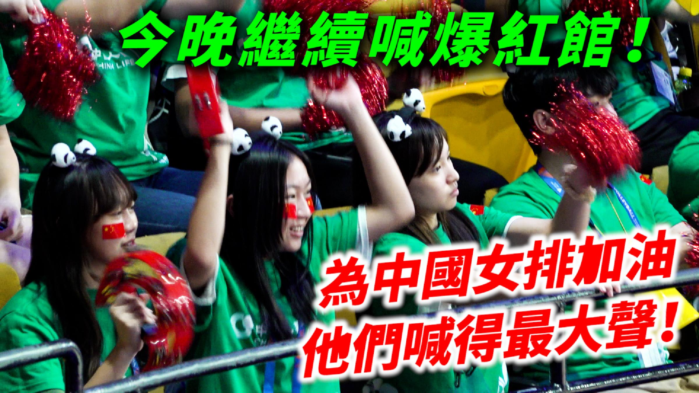 戴上熊貓頭飾 她們為中國女排喝采!